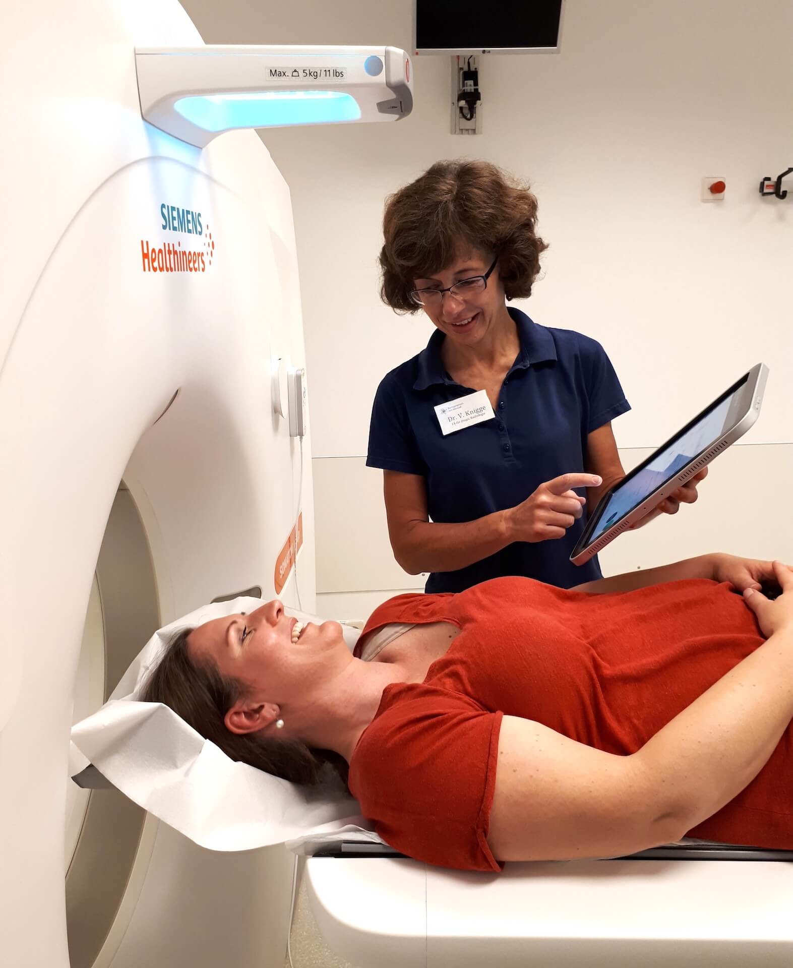 Dank der Tablet-Steuerung muss das medizinische Personal nicht mehr wie bisher mehrfach zwischen dem CT-Scanner und dem Kontrollraum hin- und herwechseln. Die Assistenten können so während der gesamten Scan-Vorbereitung nahe bei den Patienten bleiben, was die Untersuchung angenehmer macht, besonders für ängstliche oder ältere Menschen, so Dr. Knigge.