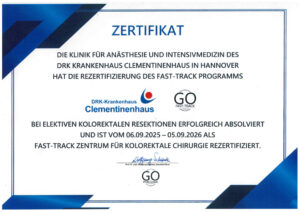 Das Clementinenhaus ist als Fast-Track-Zentrum für kolorektale Chirurgie zertifiziert. Diese Auszeichnung bestätigt unsere Kompetenz in der Behandlung von Darmkrebs und chronisch-entzündlichen Darmerkrankungen mit modernsten OP-Methoden.